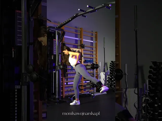Wykonaj lekką rotację tułowia w stronę pracującej nogi tak