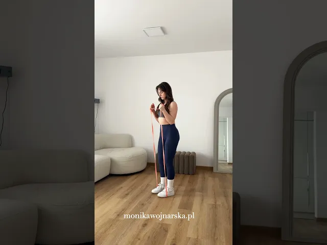Stań prosto, trzymając zaczepioną o stopy gumę oporową chwytem młotkowym.
