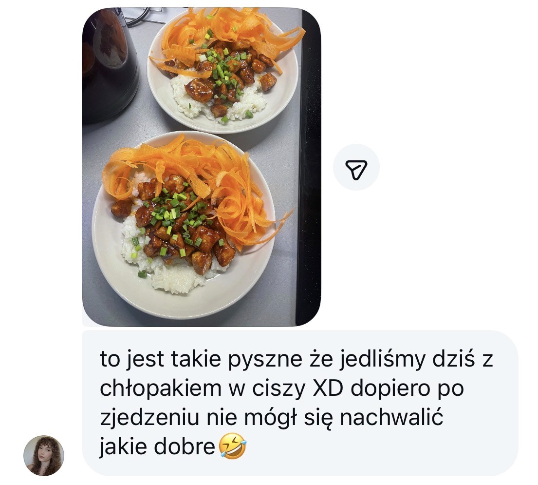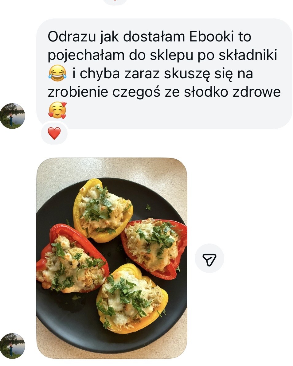 Polecam e-booki od Moniki! Są bardzo smaczne i proste w przygotowaniach + nie muszę się martwić, że jakiegoś produktu nie będzie w sklepie — bo wszystkie produkty mogę znaleźć w bliskiej dla mnie Biedronce. Przy e-booku Moniki poznaję nowe smaki i potrawy, które nigdy nie były w mojej kuchni.