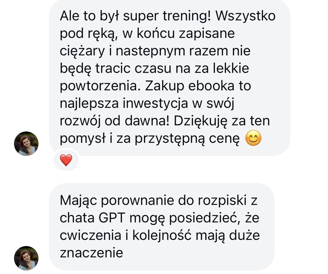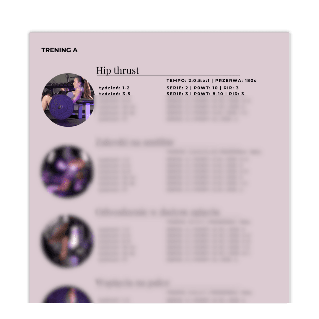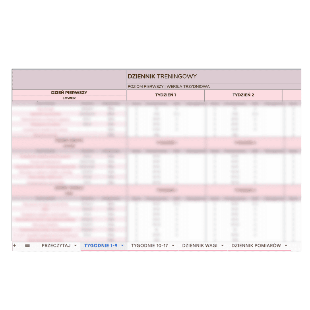 Otrzymasz dokładną rozpiskę w formie PDF jak i dziennik treningowy w excelu, gdzie wygodnie będziesz śledzić swój progres.