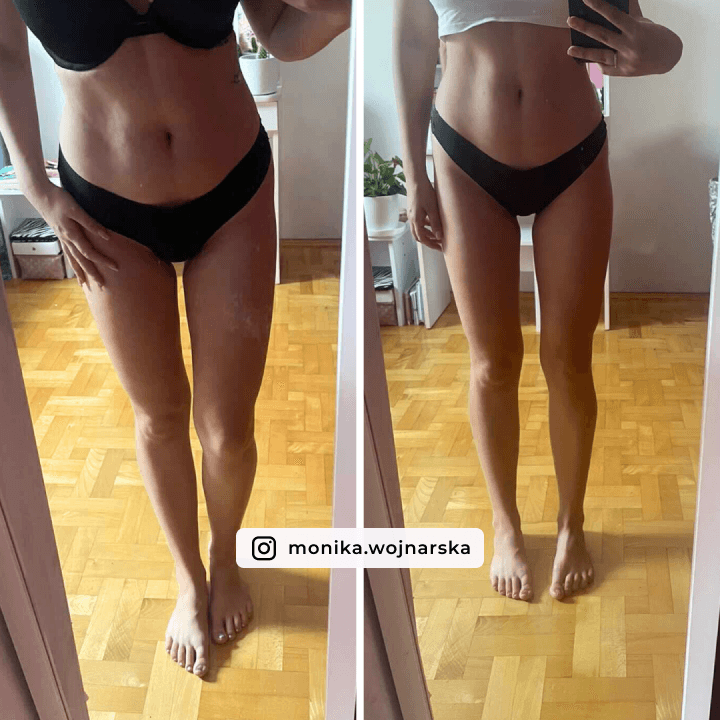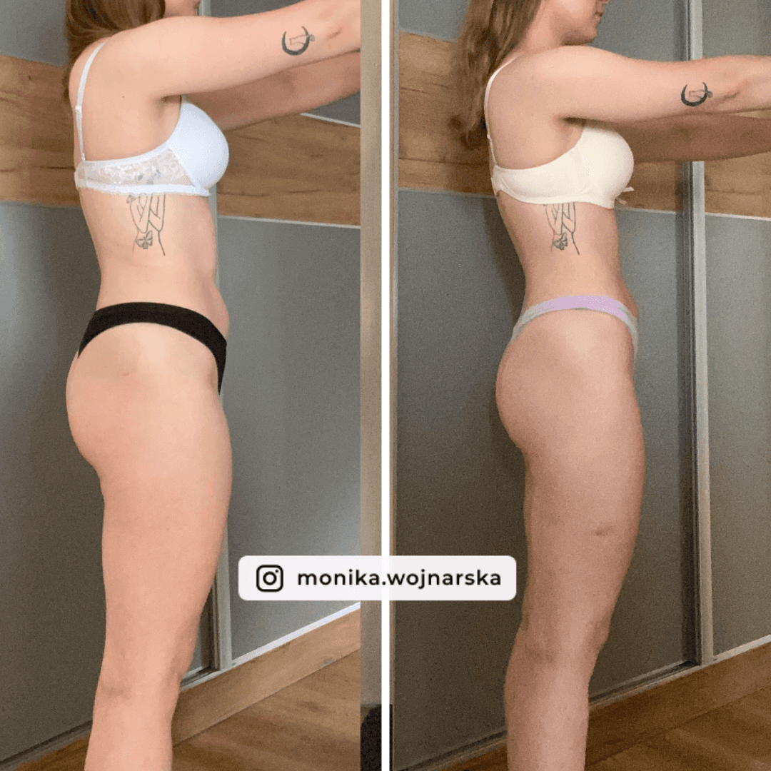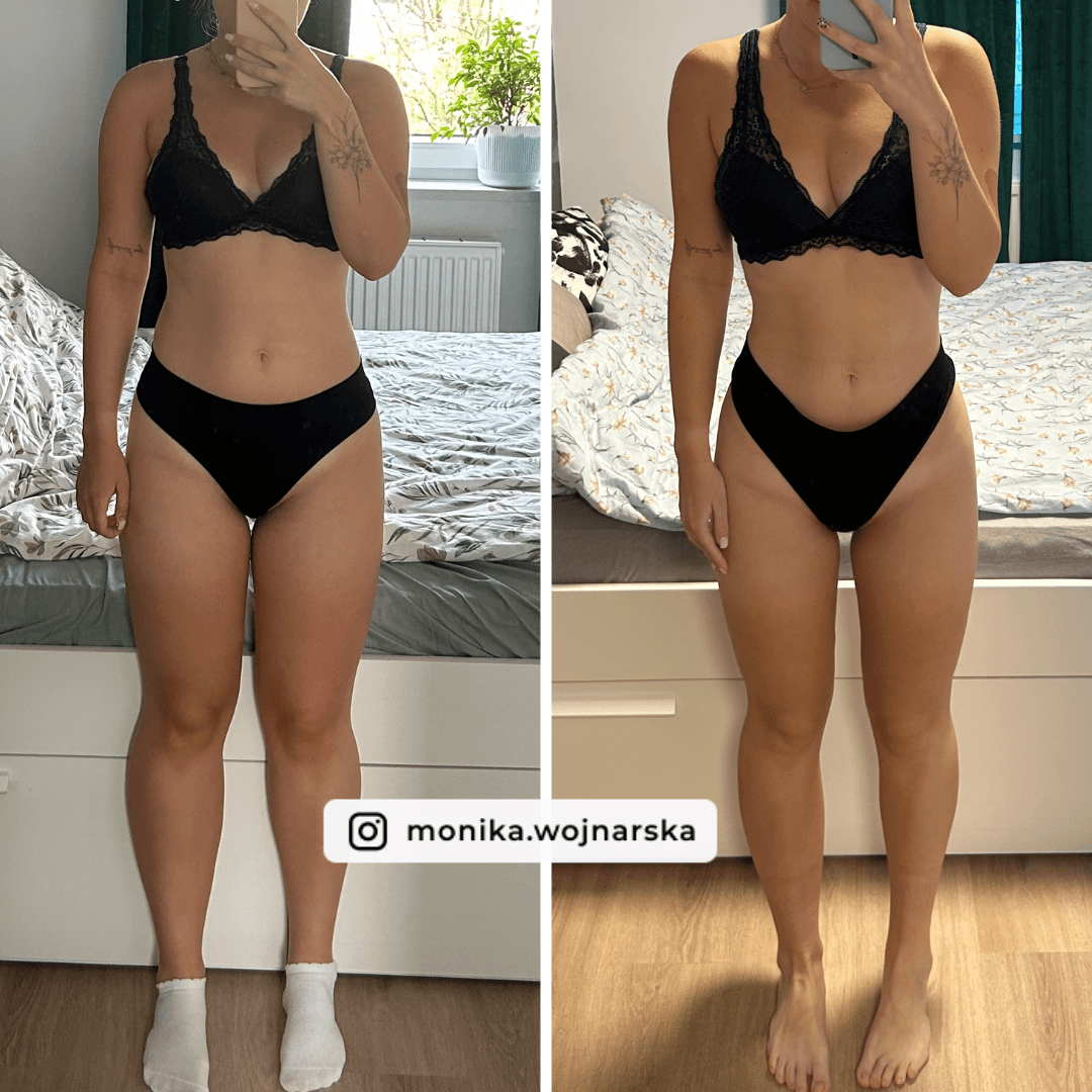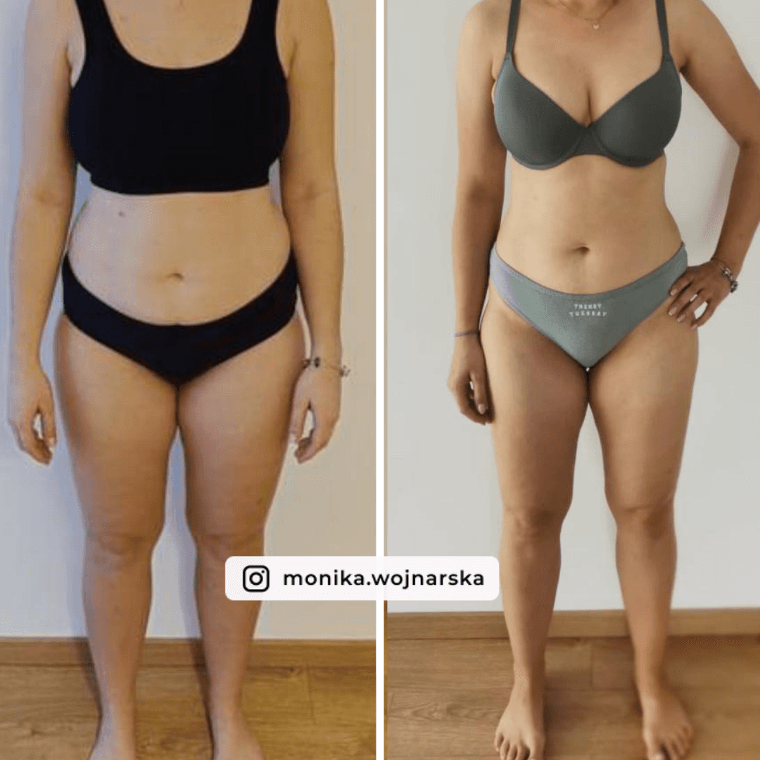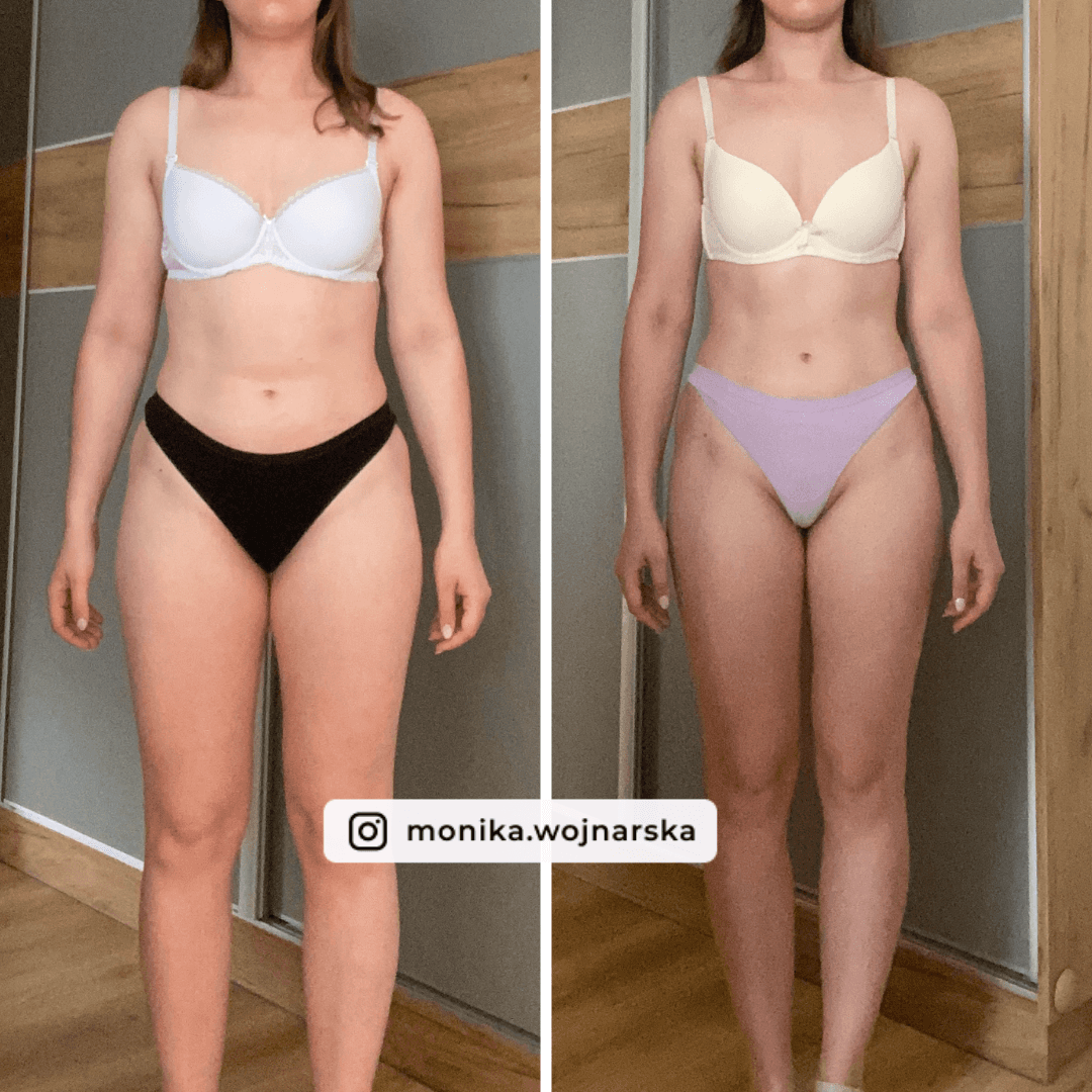 "Bardzo polecam współpracę z Moniką! To nie tylko dieta i ćwiczenia, ale przede wszystkim zdrowe podejście do procesu! Posiłki z jadłospisu są tak pyszne, że nawet nie czułam, że byłam na diecie. Stały kontakt cały czas i kontrola techniki poprzez nagrywanie ćwiczeń pozwoliły mi ciągle doprecyzowywać każde z ćwiczeń. Naprawdę polecam na maksa! Monika jest cały czas zaangażowana i nawet późnym wieczorem odpisuje🥹 "